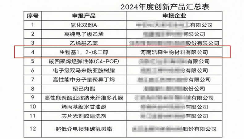 生物基1,2-戊二醇成功入選全國12項年度化工新材料創(chuàng)新產品