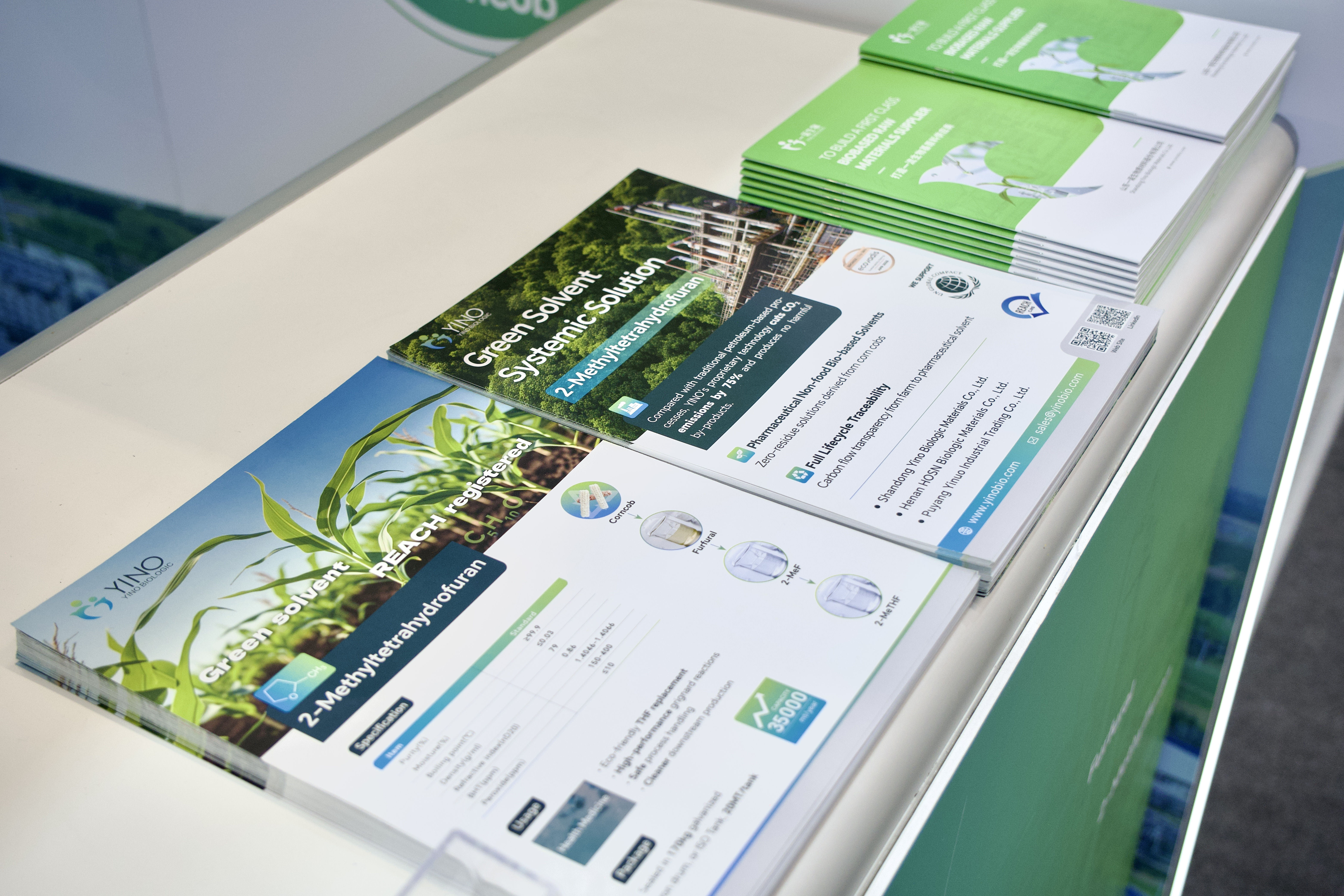 在制藥生產(chǎn)中,溶劑與原料的選擇不僅關(guān)系到工藝的安全性與環(huán)境友好性,更直接影響藥物純度和生產(chǎn)效率。YINO Biologic 以非糧生物質(zhì)玉米芯為原料,從源頭實(shí)現(xiàn)碳減排與資源高效利用,構(gòu)建了覆蓋從原料到終端制造的綠色供應(yīng)鏈。本次展會(huì)上,公司重點(diǎn)展示了多款高性能可持續(xù)產(chǎn)品,包括可作為活性藥物成分(API)合成綠色溶劑的 2-Methyltetrahydrofuran(2-MeTHF),該產(chǎn)品可有效替代傳統(tǒng) THF,顯著降低揮發(fā)性有機(jī)物排放并提升反應(yīng)安全性與效率;用于高端藥物保護(hù)基及精細(xì)化工中間體合成的關(guān)鍵原料 3,4-Dihydro-2H-Pyran(DHP);以及新一代高純度環(huán)狀酯原料 δ-Valerolactone(δ-VL),廣泛應(yīng)用于藥物輔料及聚合物開發(fā)領(lǐng)域,充分展現(xiàn)了 YINO 在綠色化學(xué)與可持續(xù)材料創(chuàng)新方面的實(shí)力。